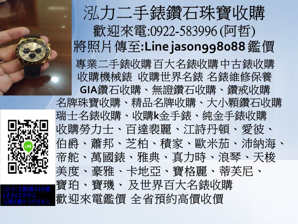 全省高價收購:0922583996 阿哲 泓力二手錶鑽石珠寶收購